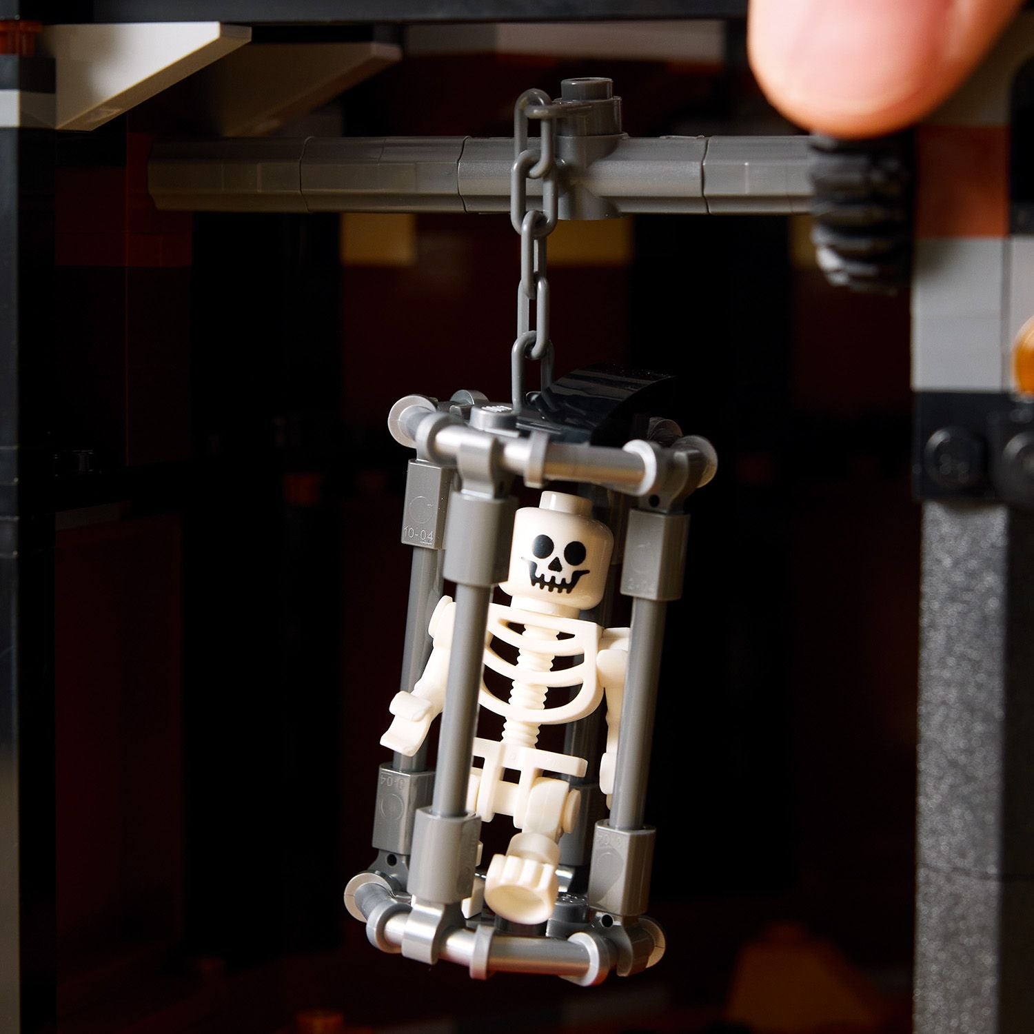 The ground-floor interior includes Gollum’s hideout, a weapons forge and a prison with a raisable Orc cage. Above the 1st-floor dining area you’ll find a room with a throne that opens to reveal a hidden map of Middle-earth. The 3rd floor is home to Mouth of Sauron’s study, while the 4th floor houses a tower library with a rotating ladder. The black gate is automated and the Eye of Sauron illuminates for a captivating display.