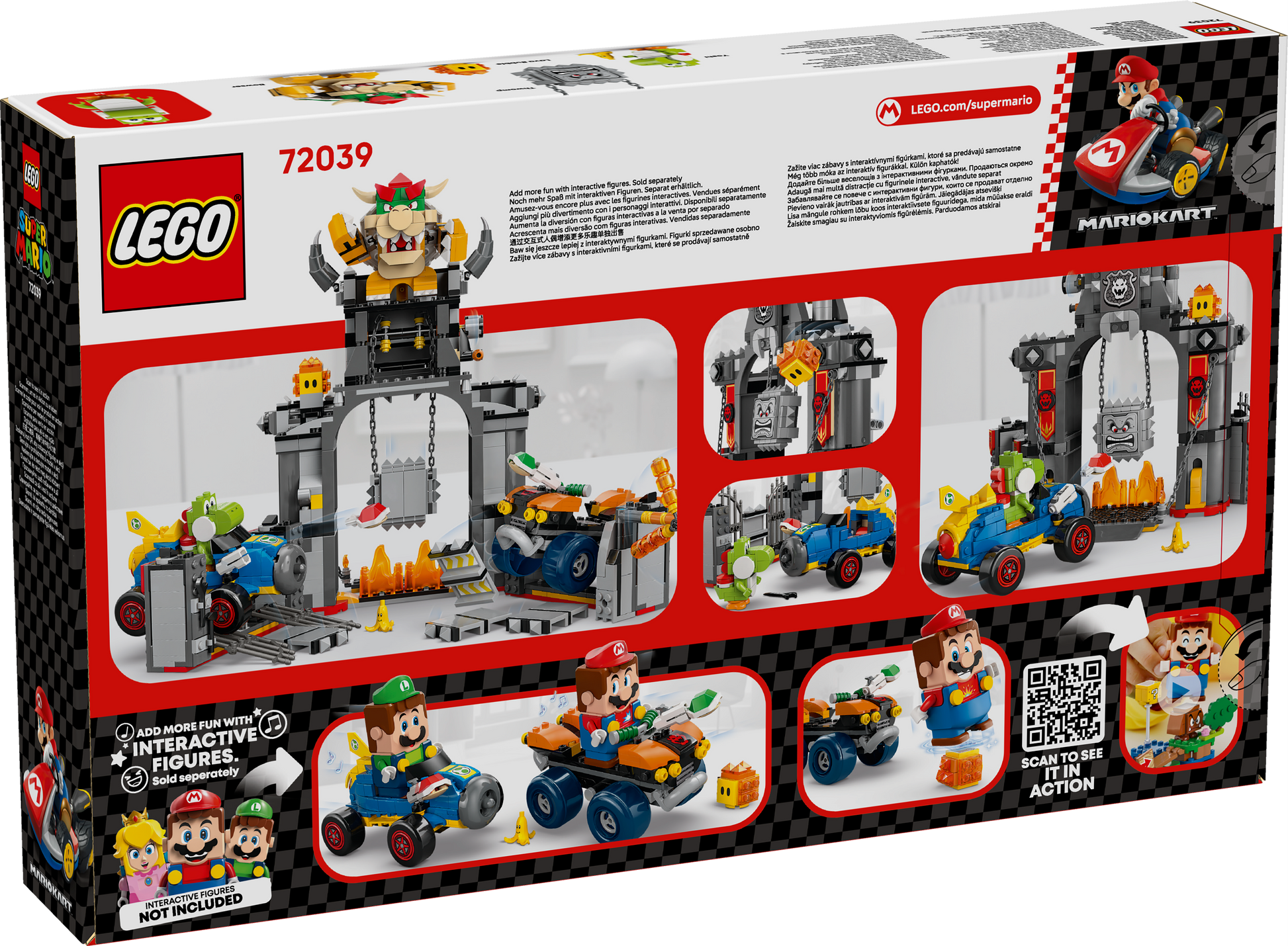 - LEGO® Super Mario™ racetrack set – Launch shells from the Standard ATV and Mach 8 kart, race around the castle (or through its foldout walls!), dodge the spinning Fire Bar, and more