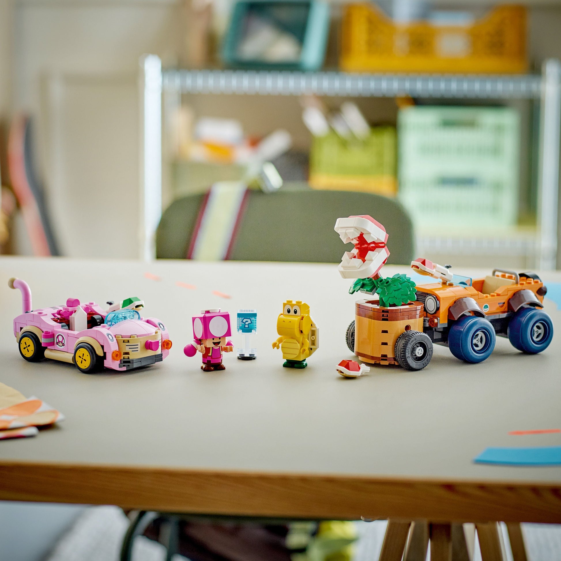 - LEGO® Super Mario™: Mario Kart™ toy playset for kids – Play out a thrilling Piranha Plant Power-Up Pursuit with a Koopa Troopa in the Tanooki Kart and Toadette in the Cat Cruiser