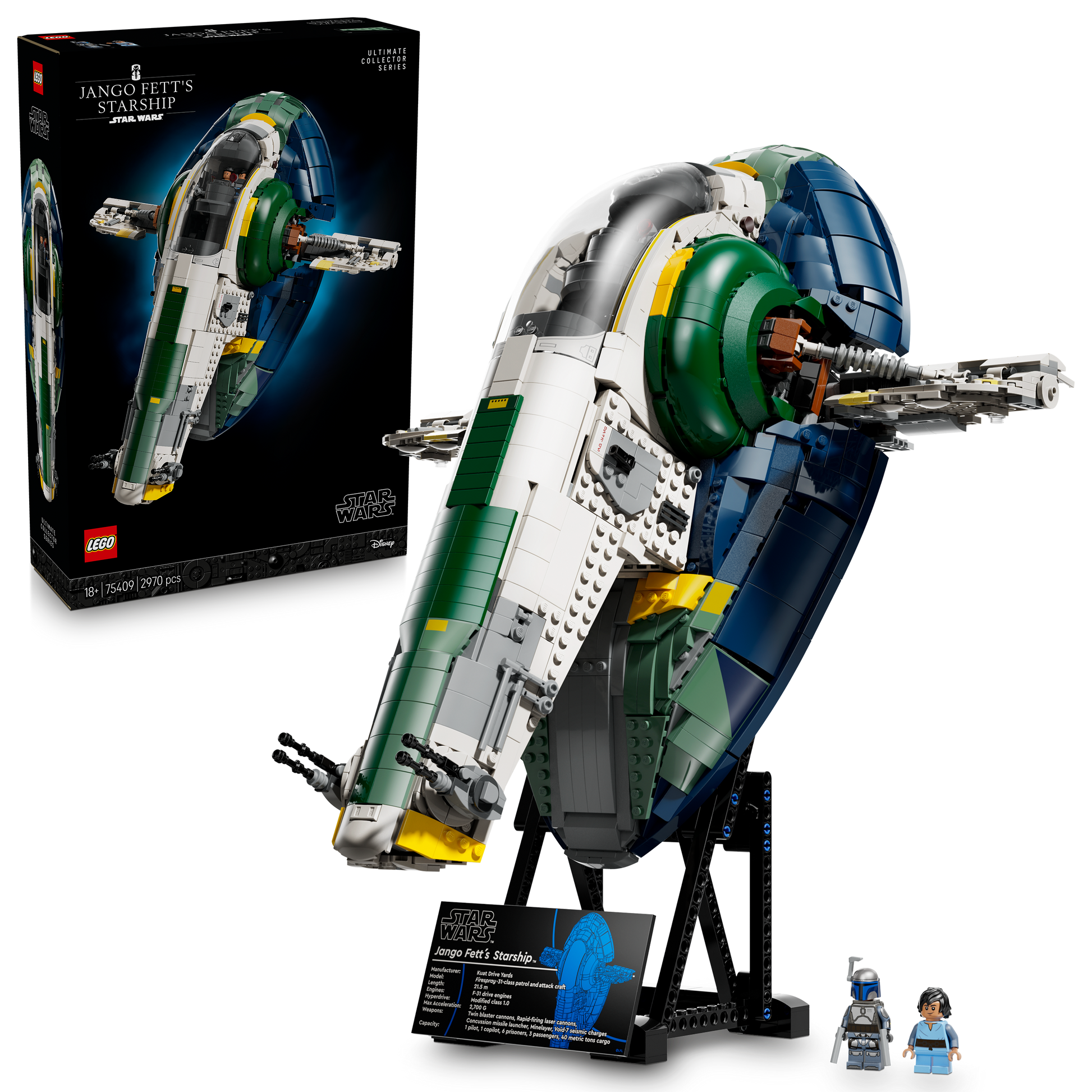 - LEGO® Star Wars™ Ultimate Collector Series display set – Create a spectacular Star Wars display with this buildable model of Jango Fett’s Firespray-Class Starship from Star Wars: Attack of the Clones™