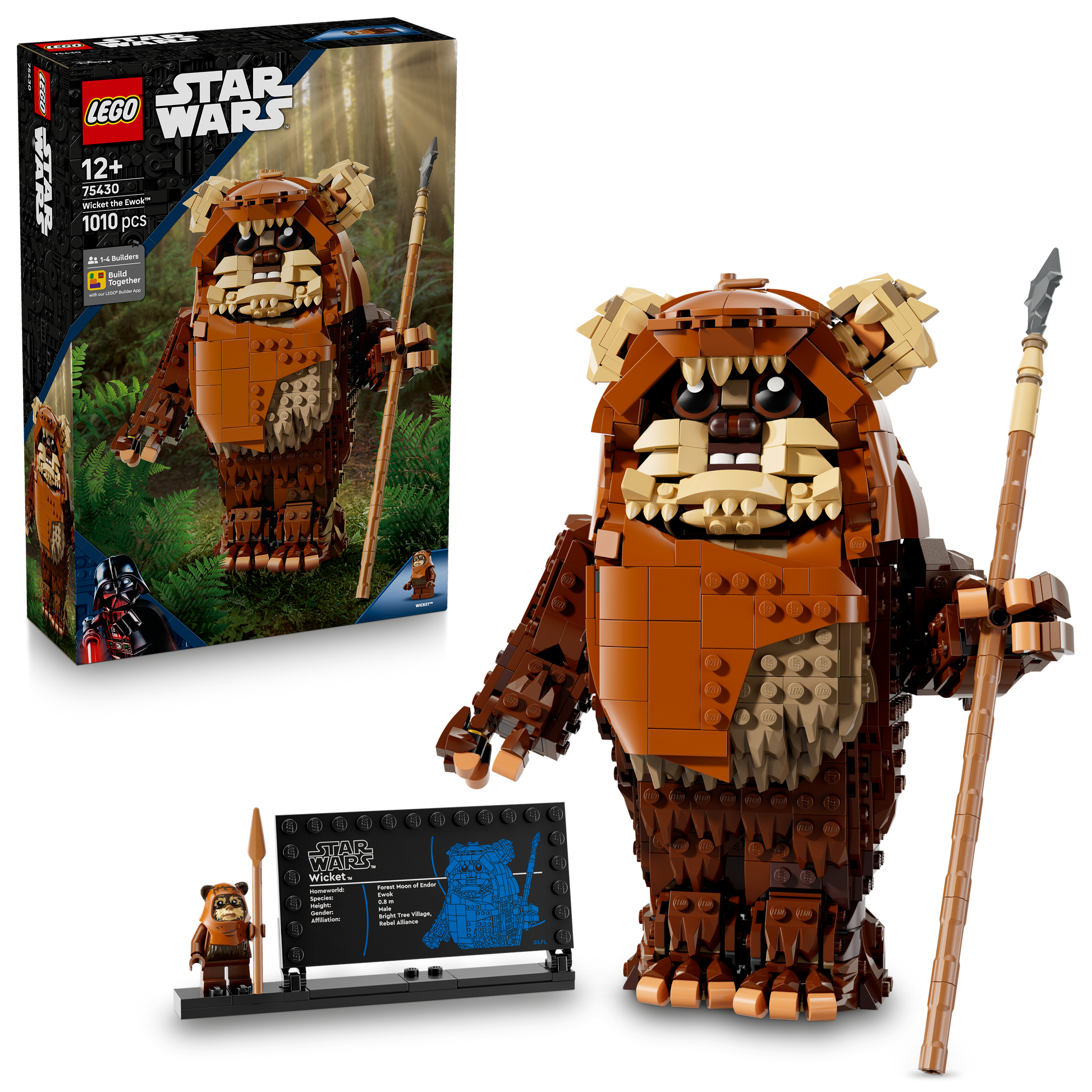 - Build-and-display set – The set also includes a LEGO® Star Wars™ minifigure of Wicket the Ewok, plus an information plaque