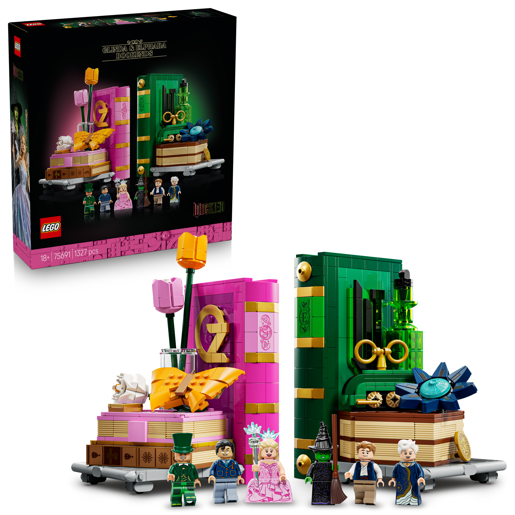 - Decorative bookends – Construct models of the Grimmerie, Glinda’s diary and butterfly, the Emerald City train Elphaba’s blue flower and green elixir bottle, and discover the hidden Easter eggs