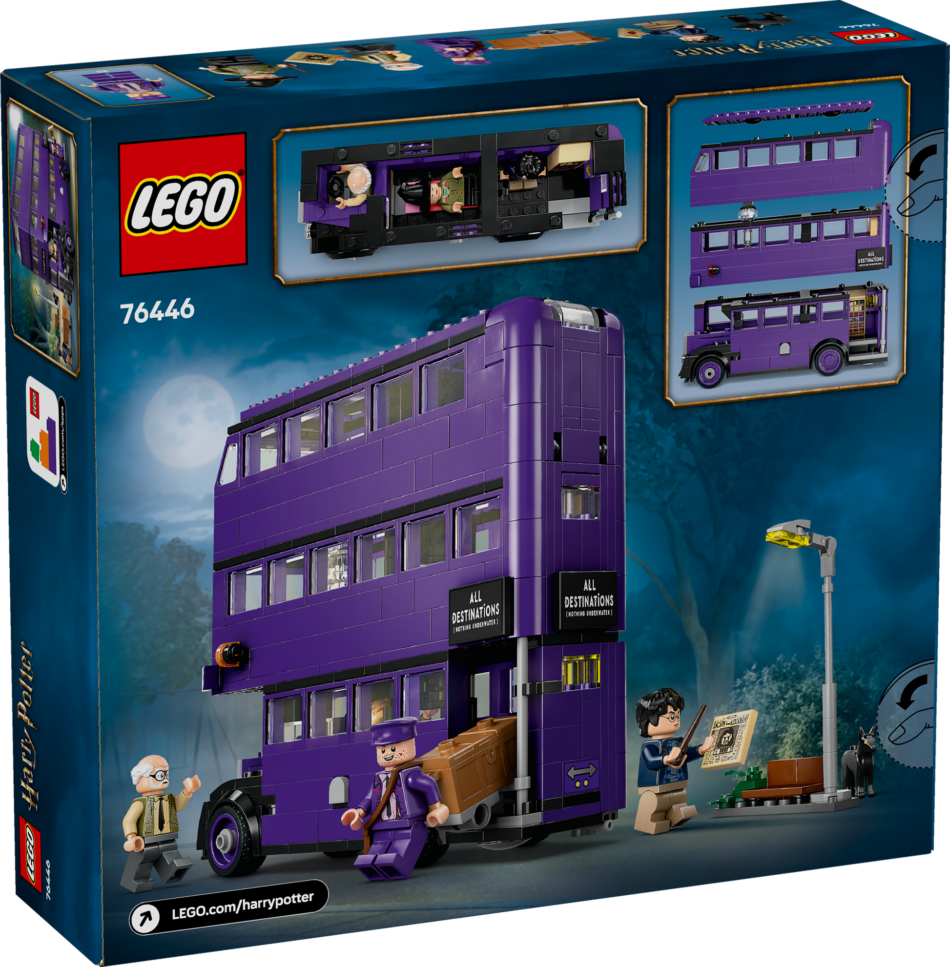 - The most detailed LEGO® brick model of the Knight Bus™ – The upper levels of the bus can be detached for easy access to the interior, which features moving beds and a swinging chandelier