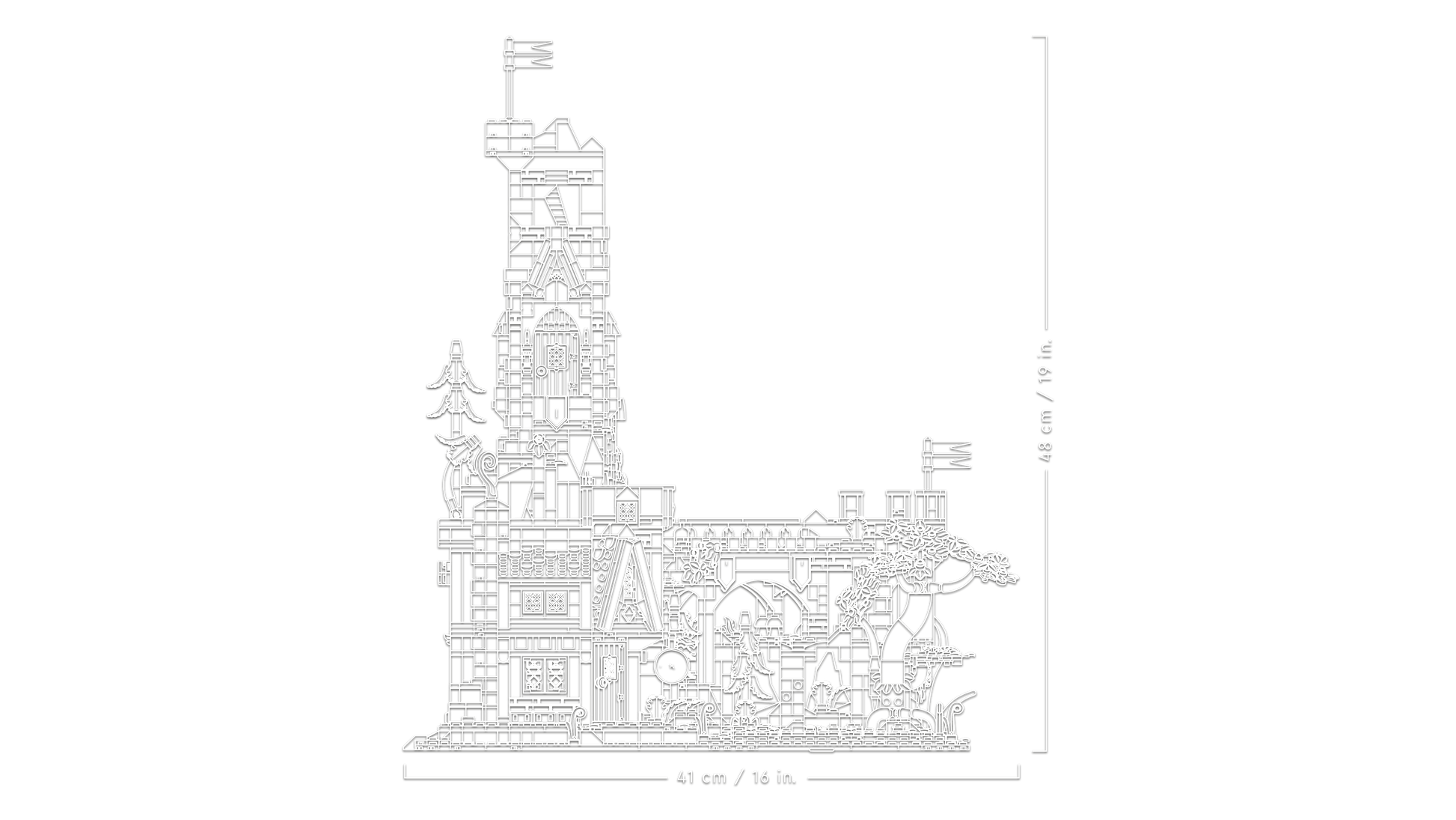 - Fun D&D® room decor for the home – The tower, tavern and dungeon build in this 3,745-piece building kit for adults measures over 48 cm (19 in.) high, 37 cm (14.5 in.) wide and 30 cm (12 in.) deep
