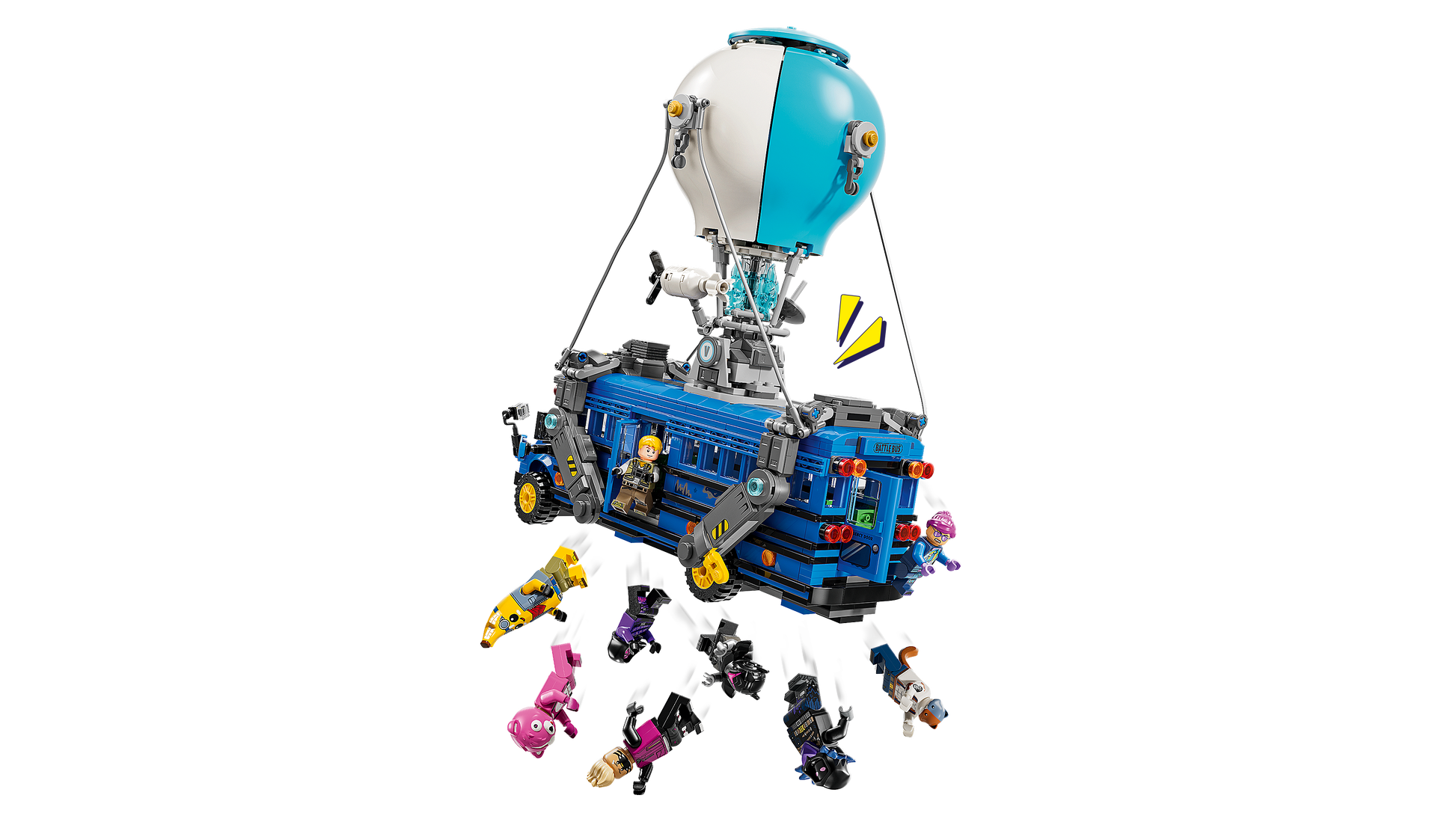 Der LEGO Fortnite Schlachtenbus (77073) ist ein Spielzeug zum Videospiel, mit dem Fans ab 10 Jahren besonders fantasievoll spielen können. Das Bauset basiert auf dem spannenden Videospiel und lässt Gamer ein cooles Fahrzeug aus Fortnite erschaffen. Wenn Fans den Spielzeug Bus bauen, werden sie in die faszinierende LEGO Fortnite Welt versetzt. Das Modell verfügt über drehbare Räder, ein abnehmbares Dach und den unverwechselbaren Heißluftballon. Doch das ist erst der Anfang! Im fertigen Fahrzeug können die Fans dann nicht nur legendäre Ausrüstung entdecken, unter anderem Schlürfsaft, einen Greifer, Spitzhacken und Schubsaft, sondern auch 9 Videospiel Minifiguren in legendären Fortnite Outfits. Die Minifiguren kann man für kreative Rollenspiele in den Bus setzen, um das Abenteuer zum Leben zu erwecken. Nach dem Spielen verwandelt sich das Sammlerstück in eine spektakuläre LEGO Wohn Deko, die junge Fans voller Stolz in ihrem Wohnzimer ausstellen können. Das Bauset und kreative Gaming Spielzeug ist aber auch eine tolle Geschenkidee für Gamer und Fans von LEGO Fortnite, die viele Stunden damit verbringen werden, ungeahnte Kreativität zu entwickeln.