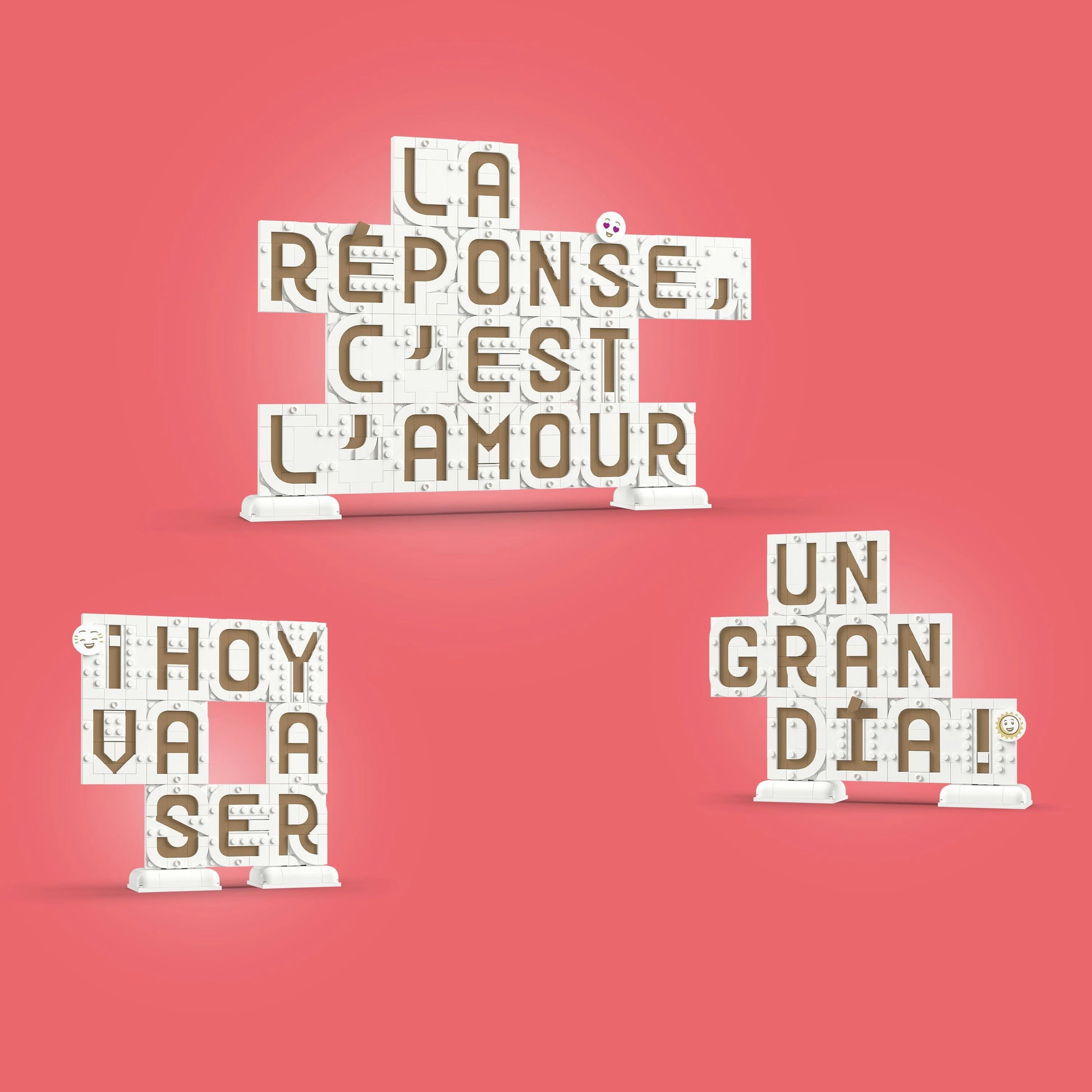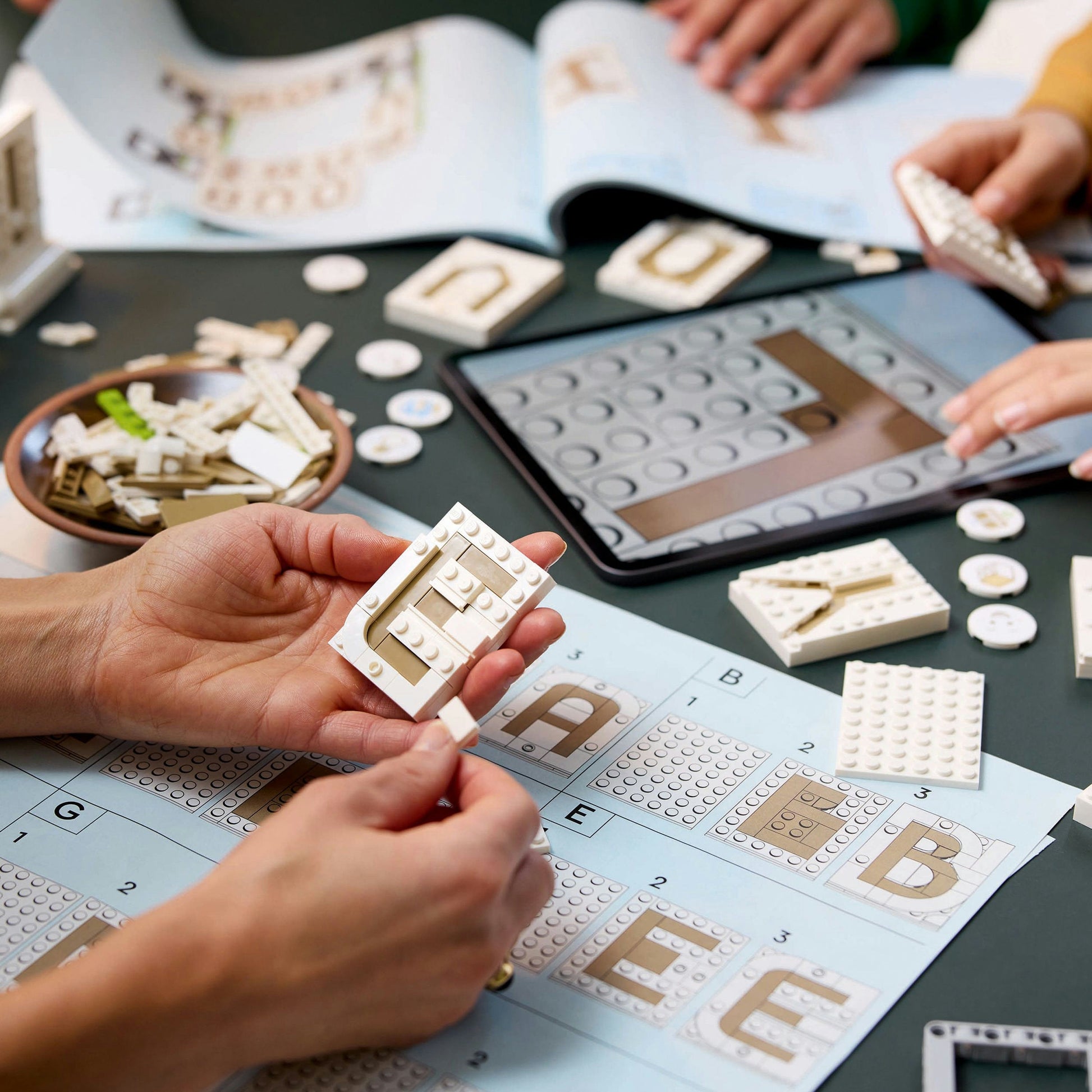 - Changeable letter board – This building set includes elements to make 30 letters from the Latin alphabet to create messages, plus instructions, inspiration and 4 posters so families can build together
