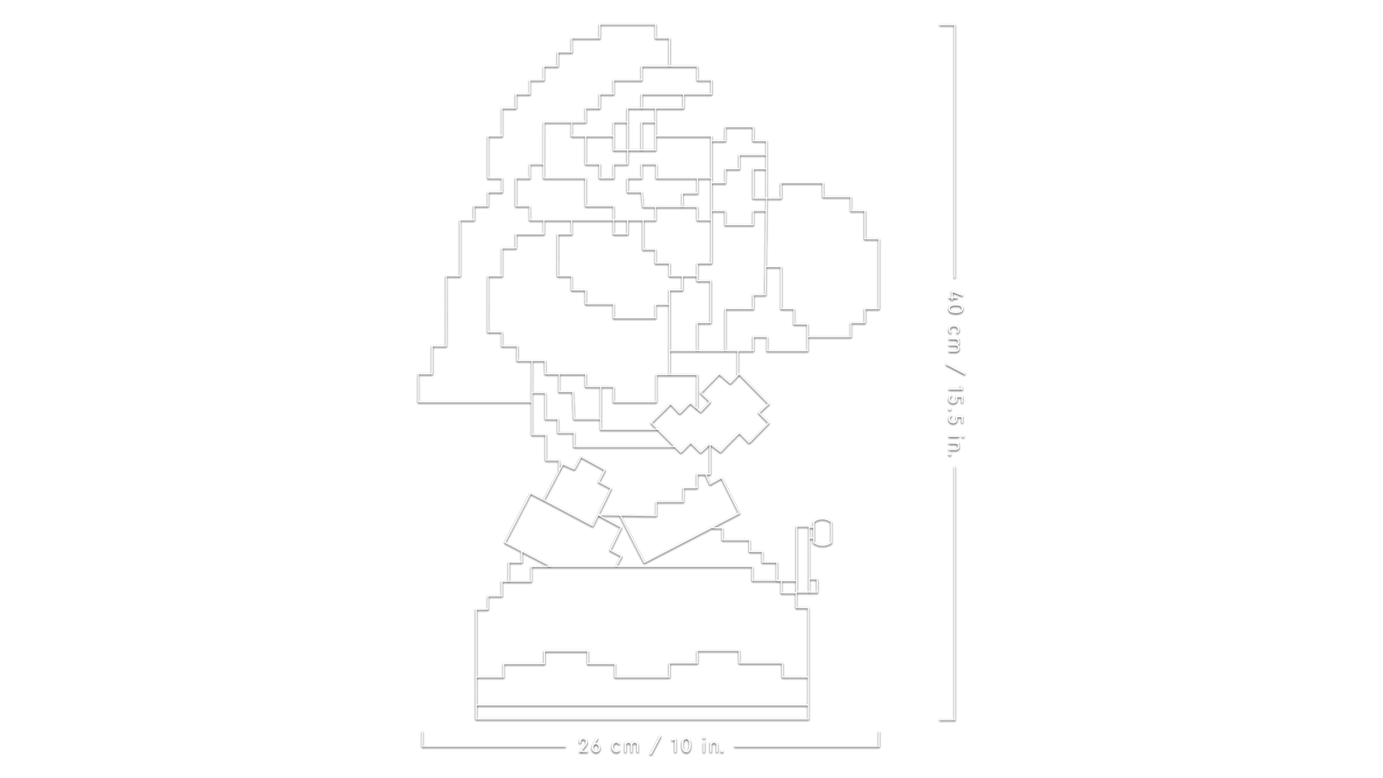 - Measurements – This 1,215-piece display model measures over 40 cm (15.5 in.) high, 26 cm (10 in.) wide and 11 cm (4 in.) deep and makes fun room decor in any Super Mario™ fan’s home or office