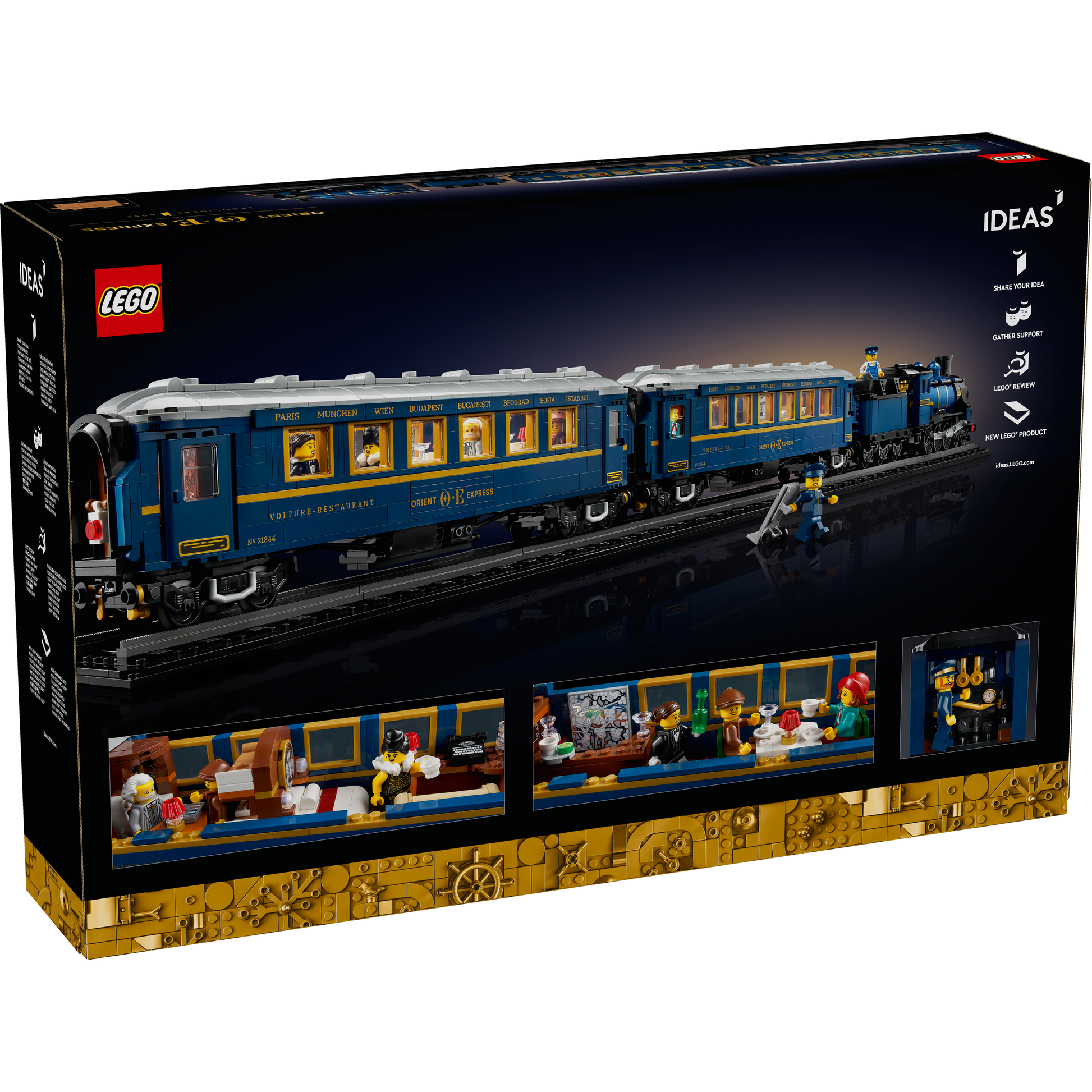 Hark back to the golden age of train travel as you build this stunning LEGO® Ideas display model (21344) of the Orient Express. An ideal gift for lovers of trains, travel and history, it features brick-built versions of the locomotive, tender, dining car and sleeping car, plus train tracks. Removable roofs allow easy viewing of the many authentic interior details of the dining car and sleeping car, including the inlaid panels and a mirror effect above the bed in the sleeping car’s first-class room. All aboard! There are also 8 LEGO minifigures, including a railway station manager, duchess and a film director (based on the fan designer who created this set!). Find instructions in the box and on the LEGO Builder app to guide you through every step of the immersive creative experience. Building sets for adults Welcome to your zone. LEGO Sets for Adults is a carefully curated collection of top-quality models. Whatever your passion, there is a building project waiting for you.